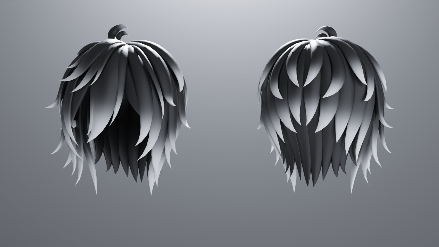Long low ponytail hair + Short hair (3D Model Asset)(Commercial license)
