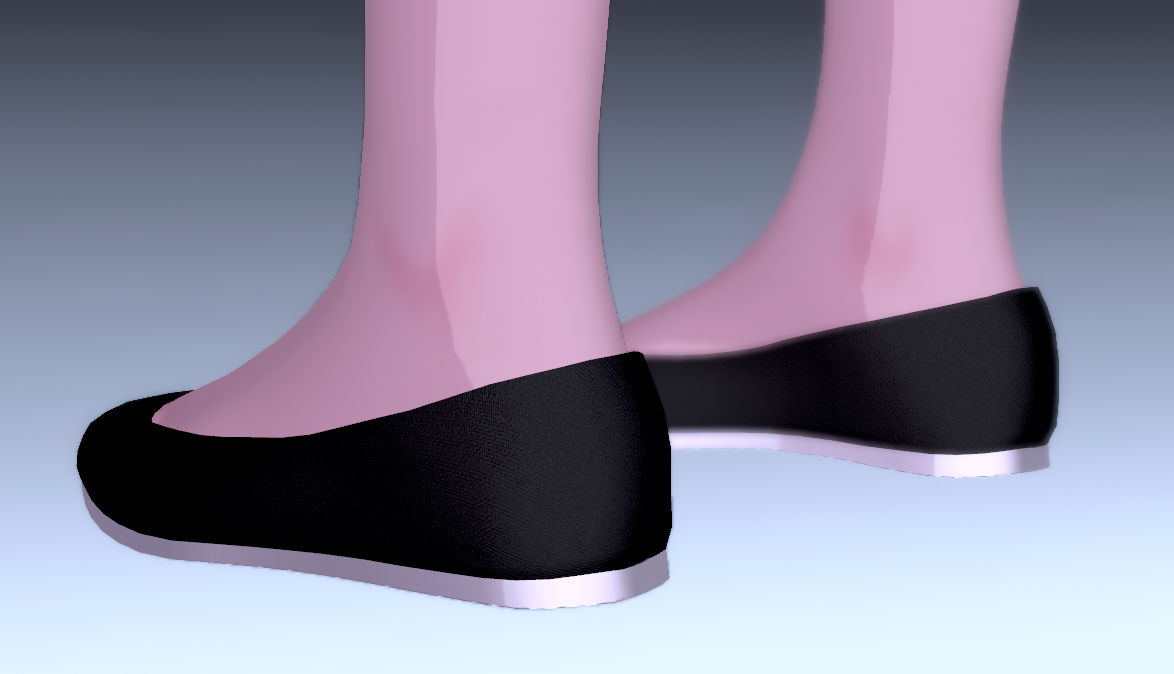 From scratch made cute and simple flat shoes by me. Comes with 1 FBX file containing the pair of shoes (2.4k polycount), and 2K custom made textures + normal maps for everything. Rigged to my edit of Pandaabear's female base.