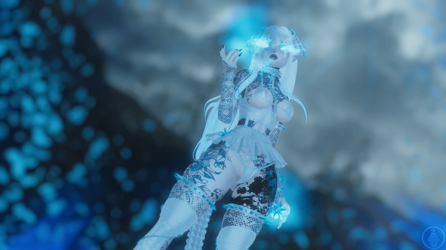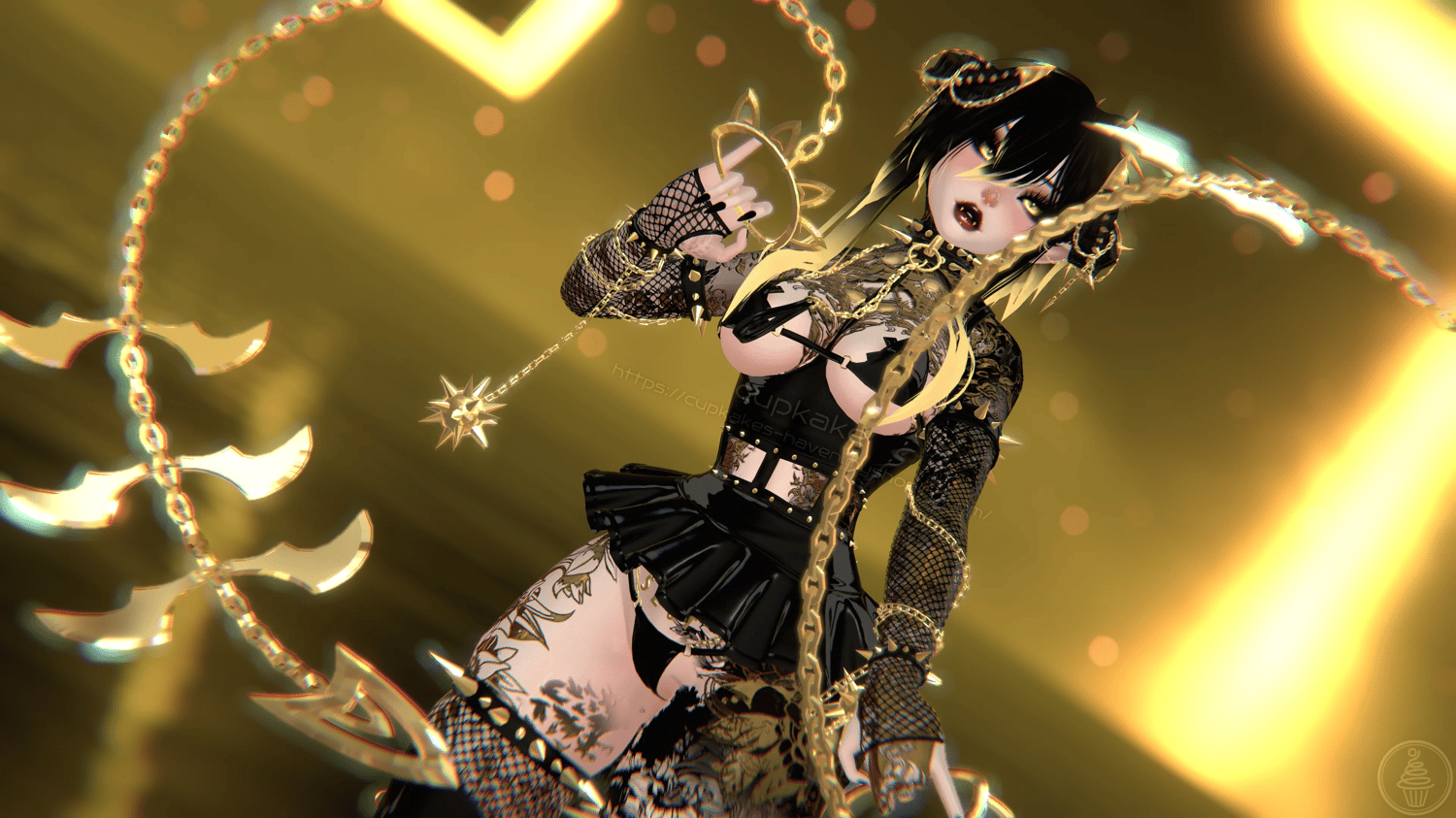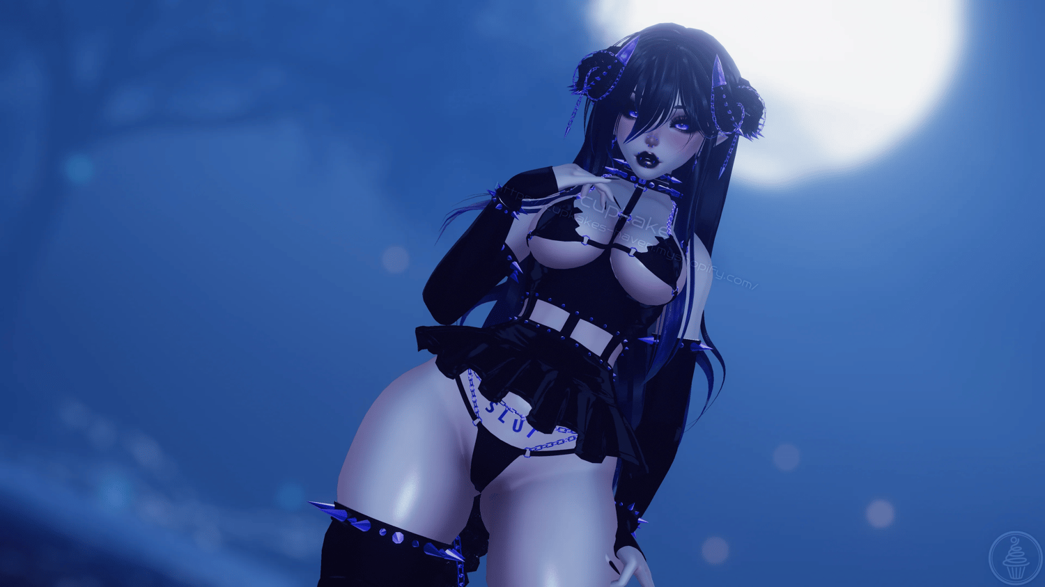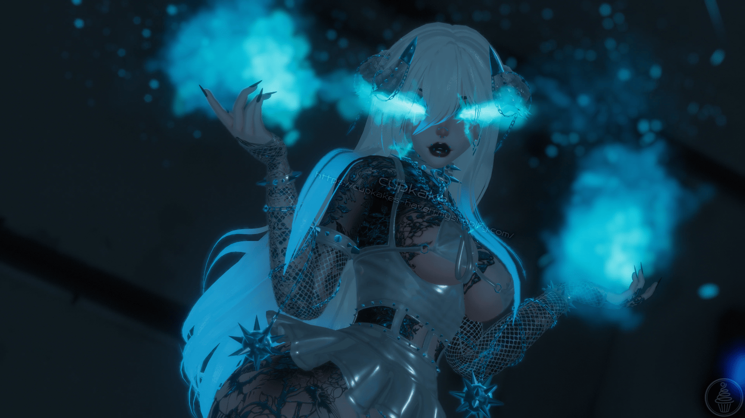 Assets made from scratch by me(Cupkake): Horns/Tail, Mask, Choker+Leash chain, Corset top, Skirt, Bra, Panties, Pasties, Gloves, Socks, All spikes/Spiked accessories/Chains/Ballchains, Face/Body piercings, Ballgag, Wiggly tongue