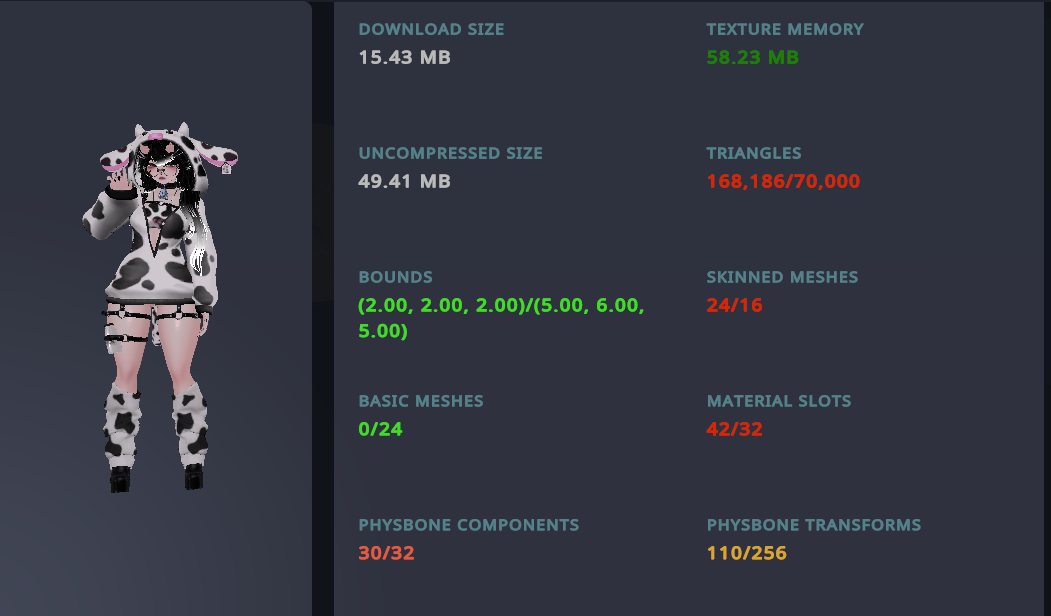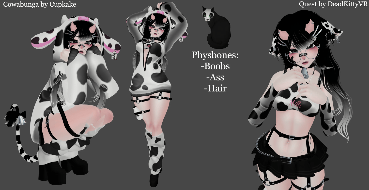 - Phys bones in: Ears, Hair, Chest, Butt, Thighs, Tail, Choker bell, Cow hoodie