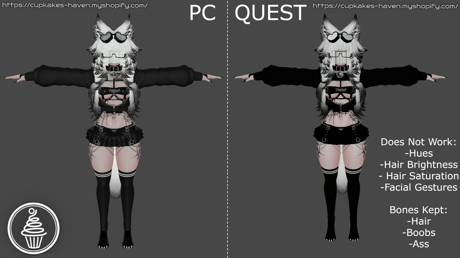 - Phys bones in: Ears, Hair, Chest, Butt, Thighs, Tail, Choker bell