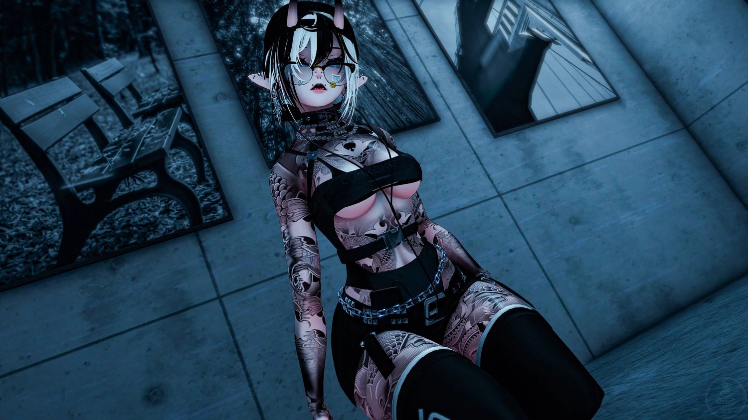 Assets made from scratch by me(Cupkake): Horns, Elf Ears, Oni Tail, Gloves, Socks, Belt, Phone+Earbuds, Bra, Panties, Pasties, All Piercings, Wiggly tongue