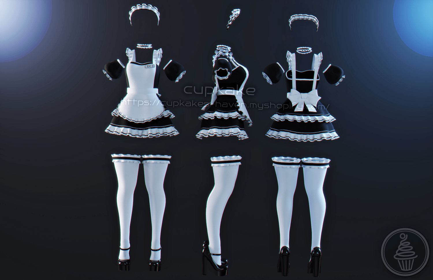 • FBX [Outfit consists of - Headband, Choker, Sleeves, Apron, Dress, Socks, Shoes]