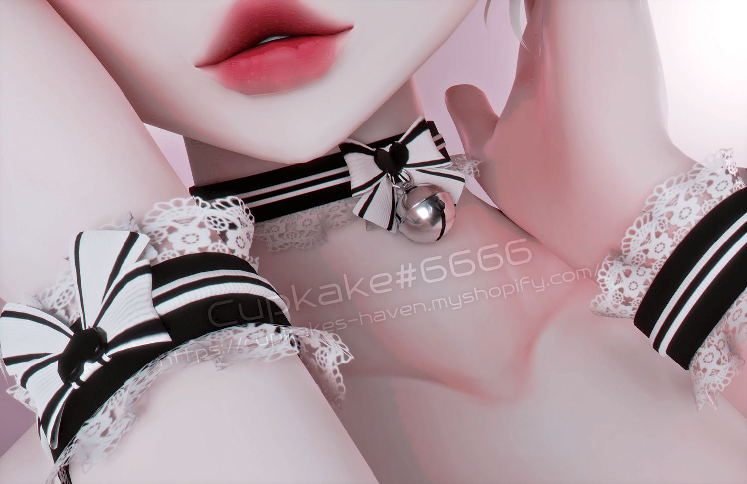 Frilly bow Choker and Wrist cuffs (3D Model Assets)(Commercial license)