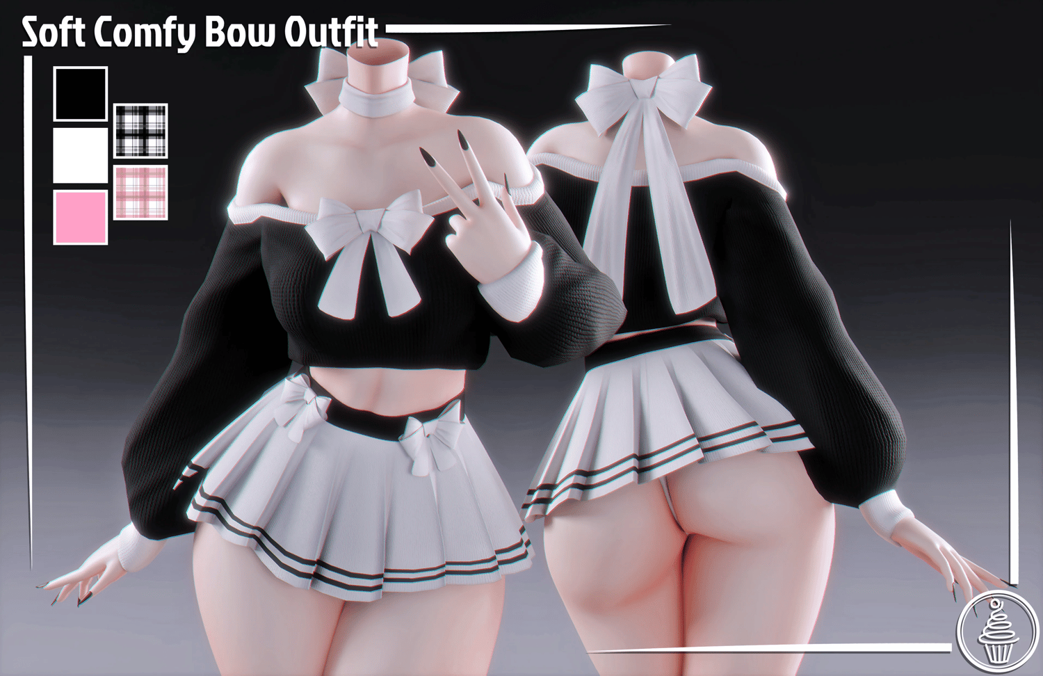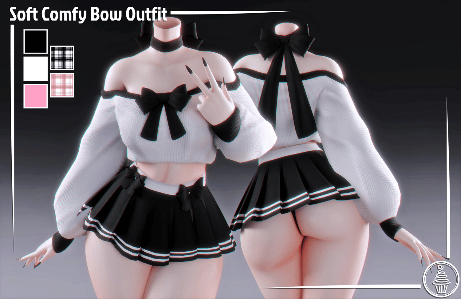 Soft Comfy Bow Outfit (3D Model Asset)(Commercial license)