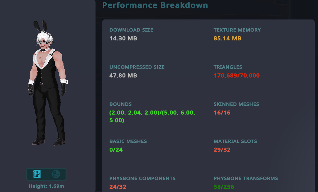 - Phys bones in: Bun Ears, Hair, Pecs, Butt, Coat tail, Bulgiewulgie, Glasses