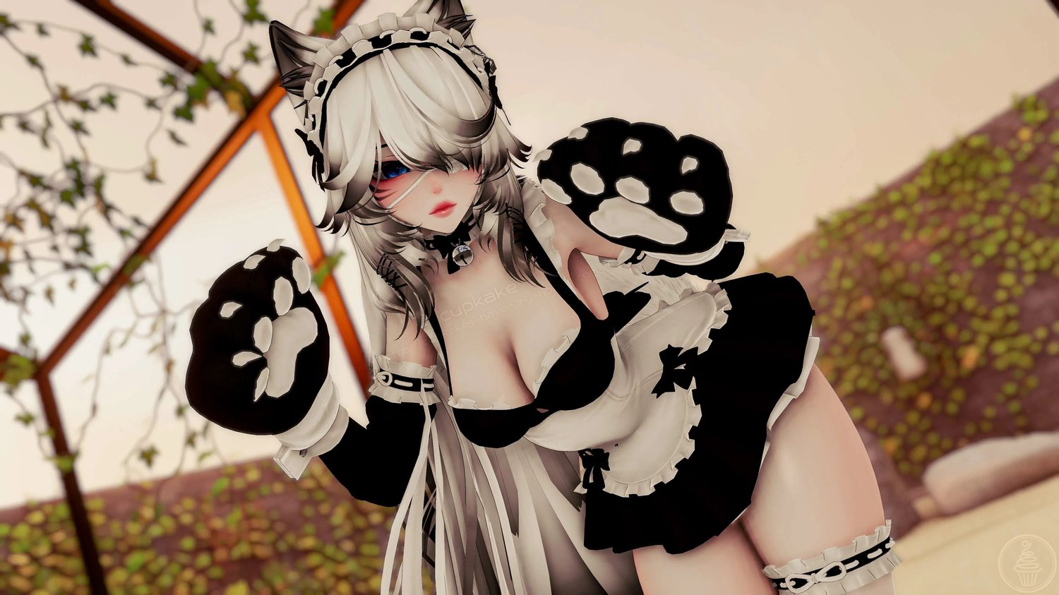 Assets made from scratch by me(Cupkake): Main Dress, Arm Bands, Sleeves, Cuffs, Paws, Choker, Headdress, Garters, Socks, Bra, Panties, Pasties, Eyepatch, Glasses, Shoes, Tail, Wiggly tongue