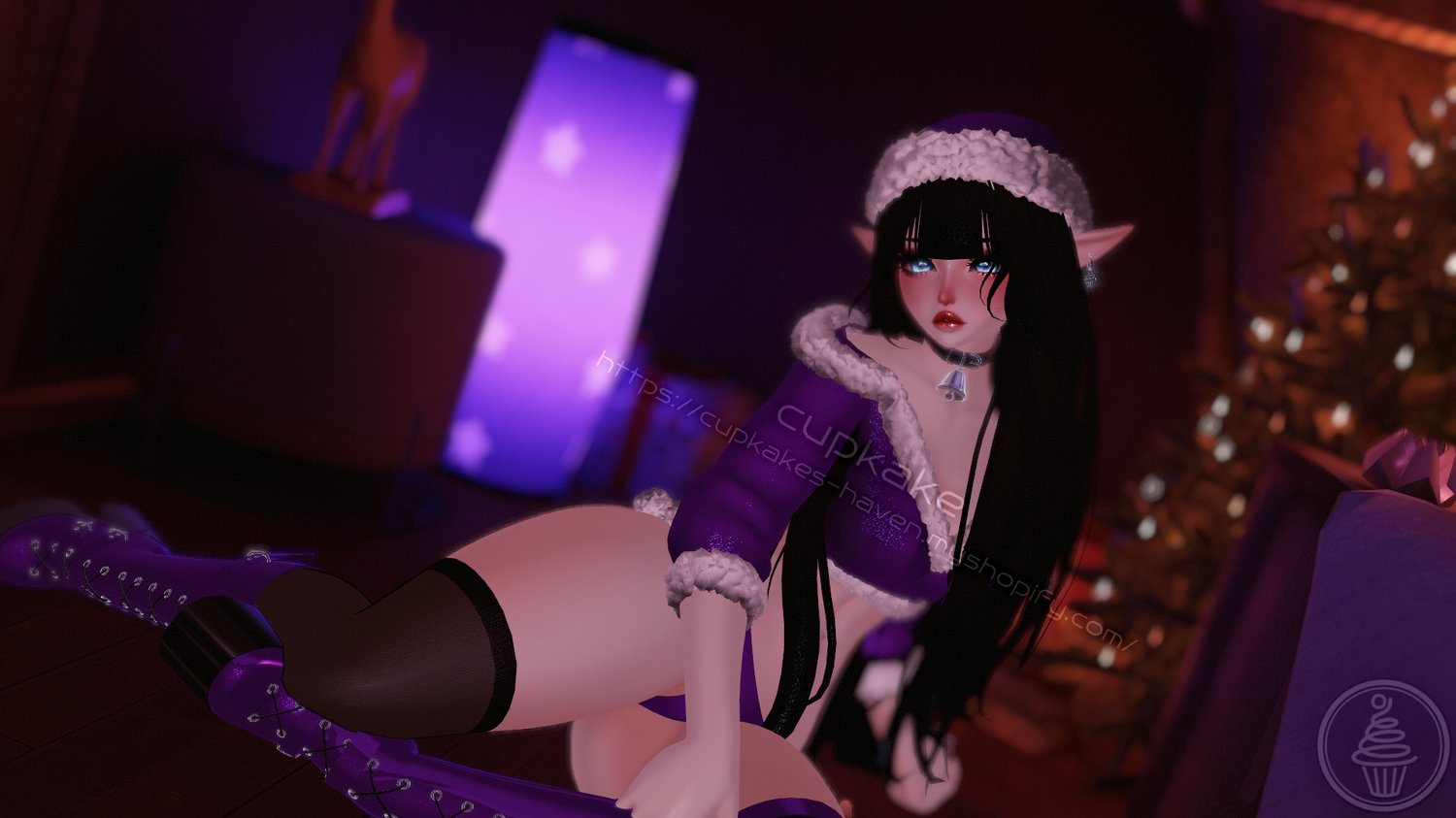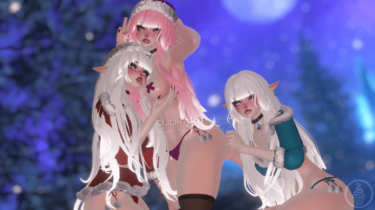 Assets made from scratch by me(Cupkake): Santa Hat, Top, Skirt, Panties, Pasties, Socks, Bell on collar, Elf ears, All piercings, Face texture, Eye texture