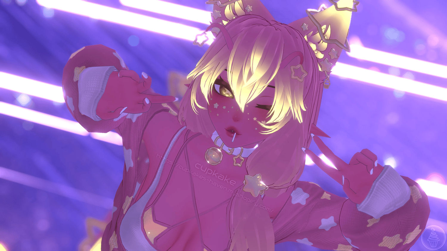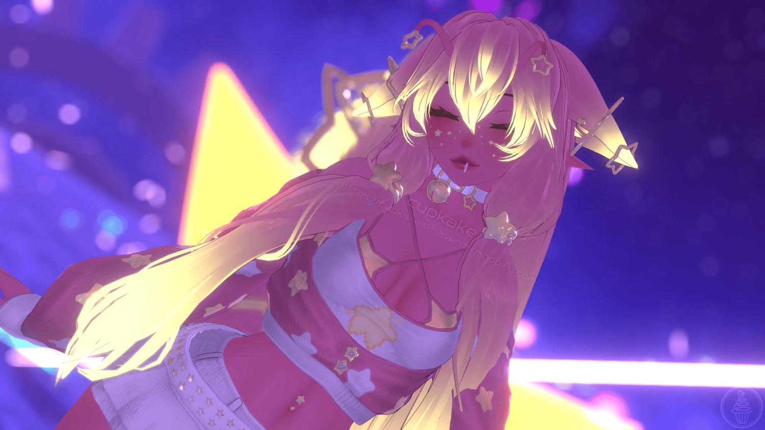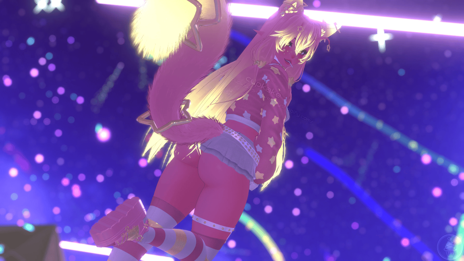 Assets made from scratch by me(Cupkake): Front hair, Sweater, Tank top, Bra, Panties, Garter, Socks, Fox ears/Tail, Face stars, Lollipop, Antennas, All star charms, All piercings, Wiggly tongue