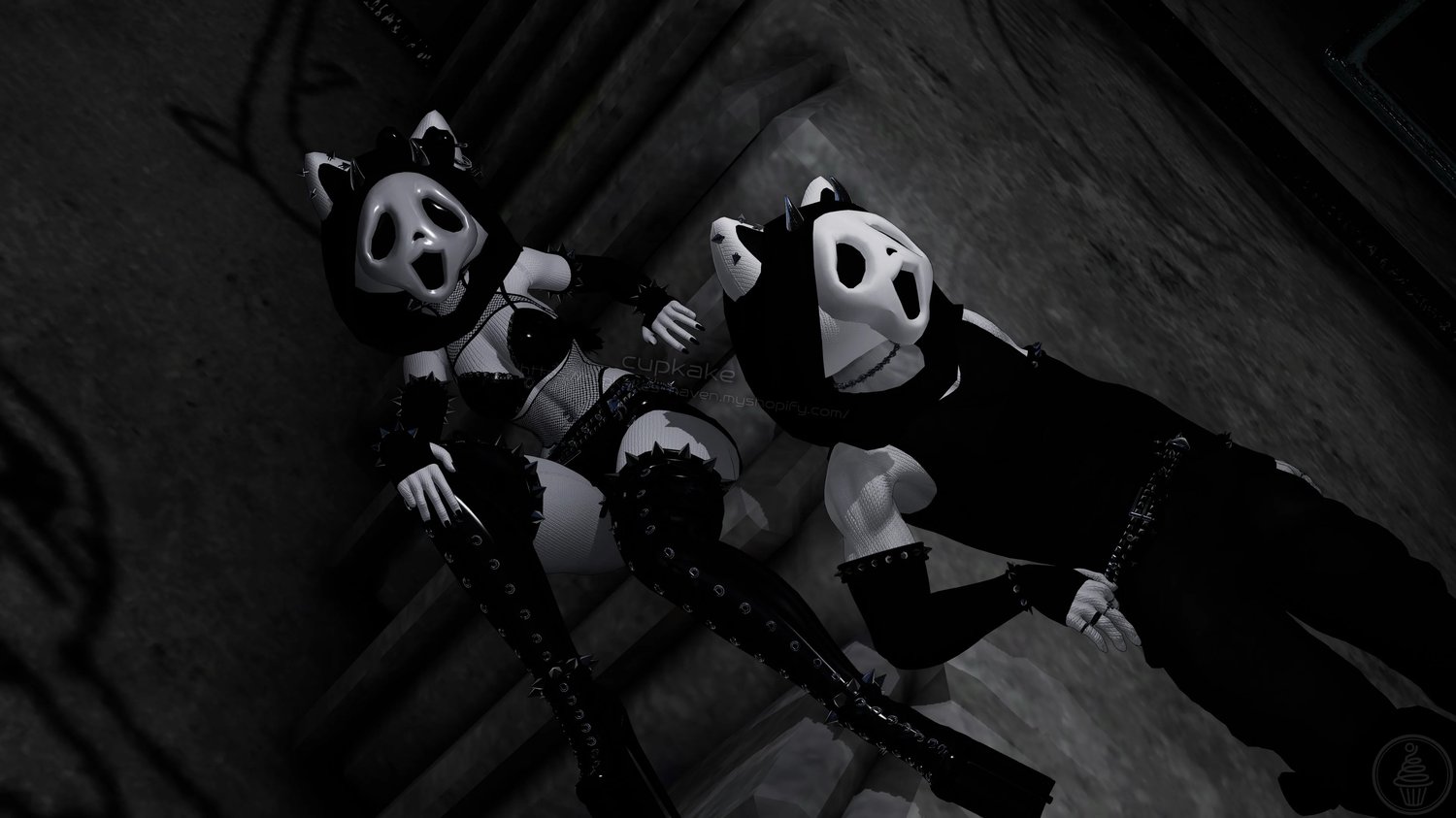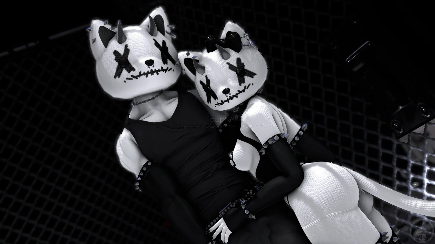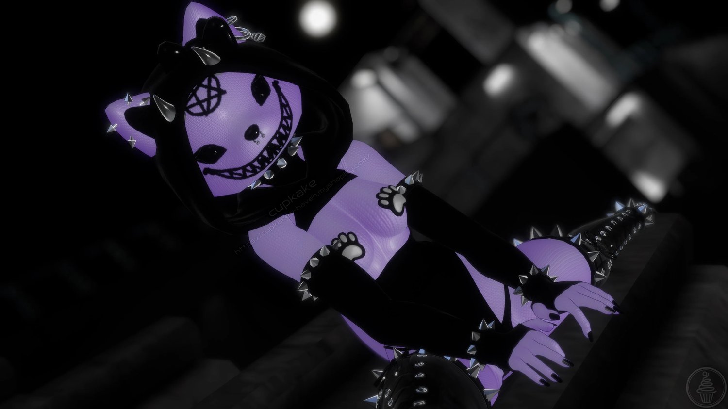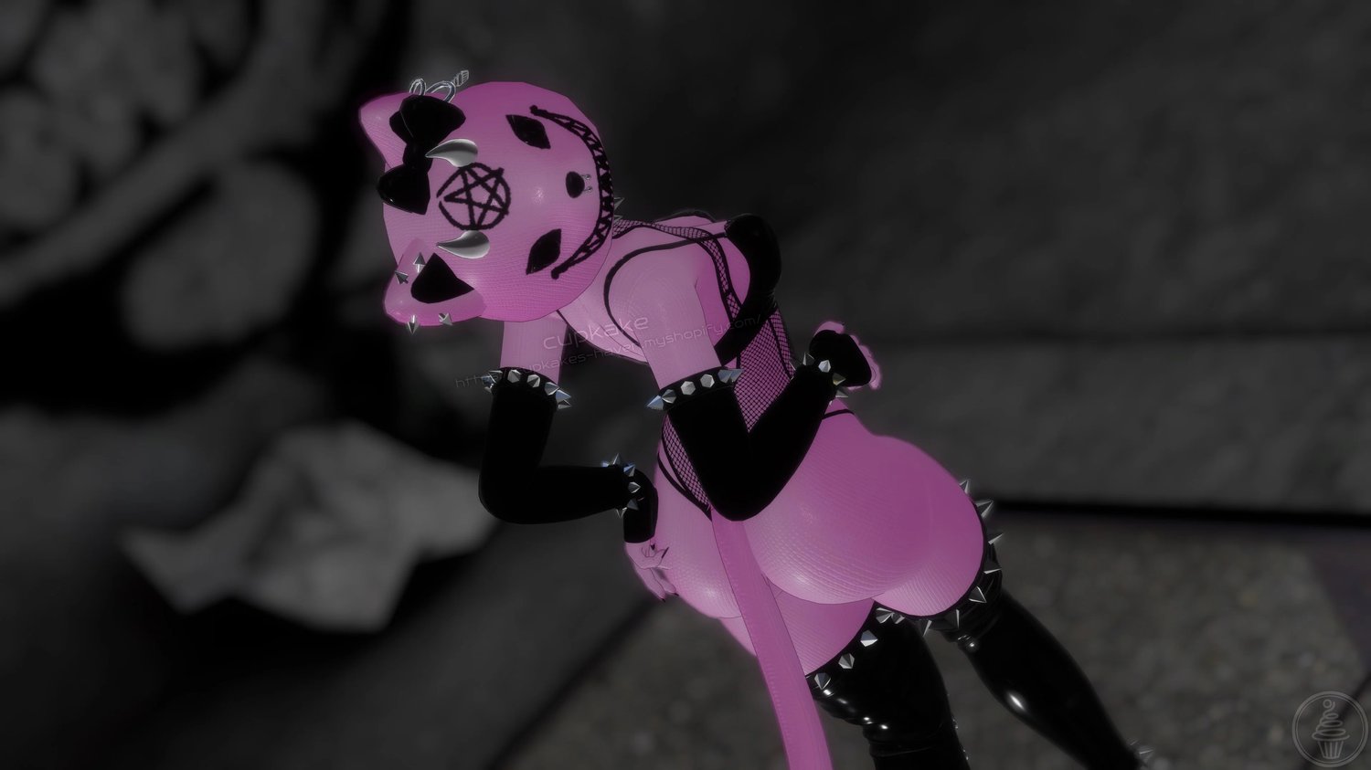 Assets made from scratch by me(Cupkake): Head, Mask, Hood, Gloves, Socks, Panties, Pasties, Horns, Bow, All Spike Bands, All Piercings