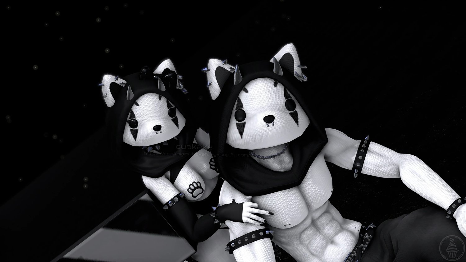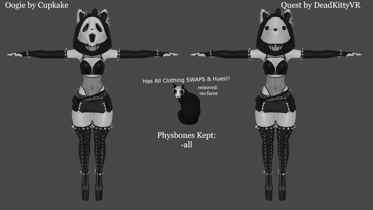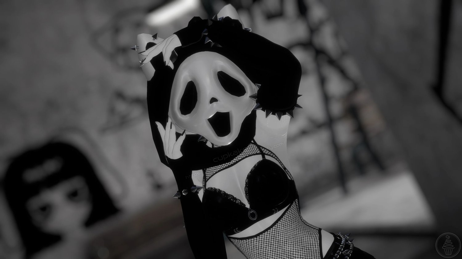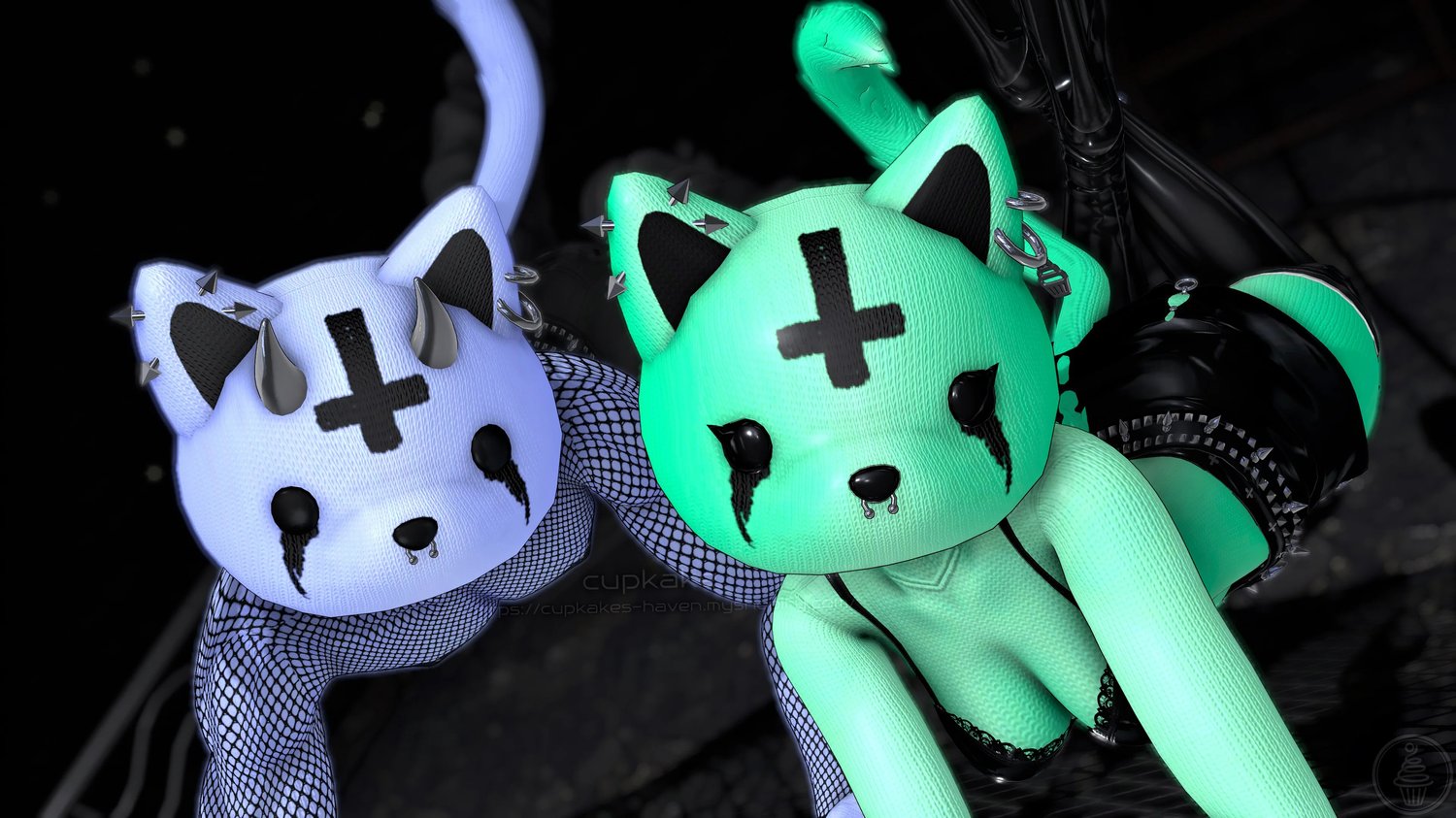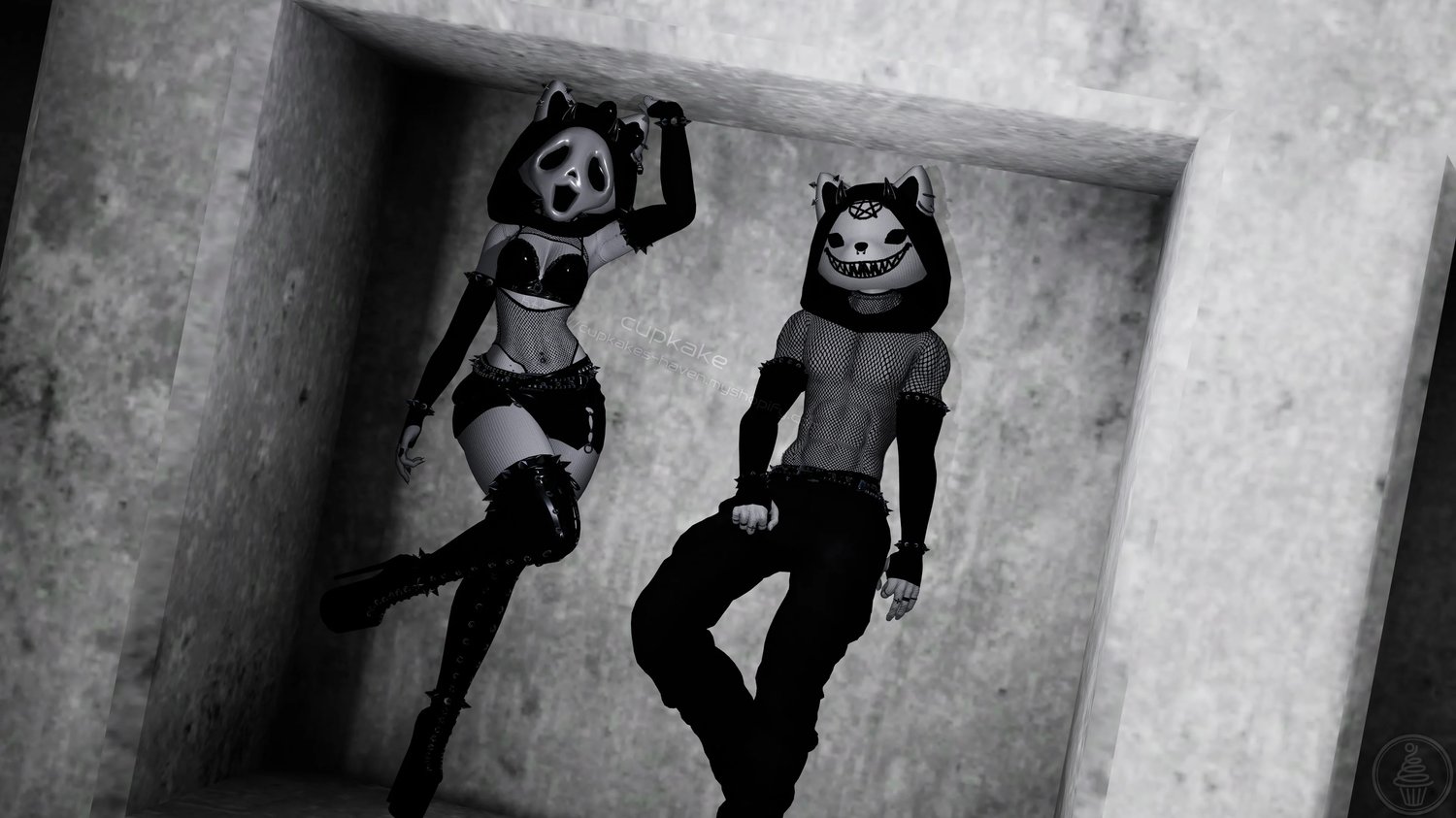 Assets made from scratch by me(Cupkake): Head, Mask, Hood, Gloves, Socks, Panties, Pasties, Horns, Bow, All Spike Bands, All Piercings