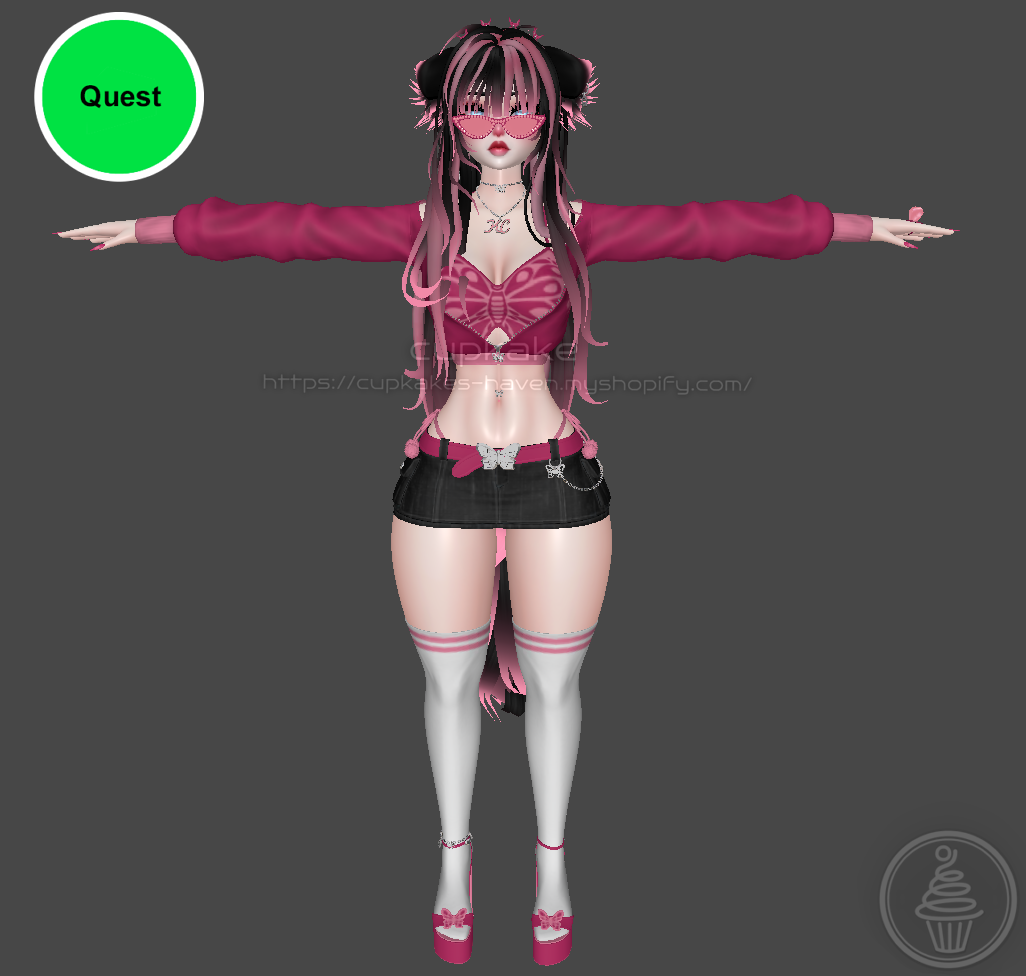 This model is part of a BIIIIG Collaboration between a bunch of talented creators (and huge cuties uwu)! ALL avatars have a simplified PUBLIC cross platform version you can try out in the collaborative world "Y2K Dreamhouse", make sure to go check out the world and everyone else's amazing work! ❤