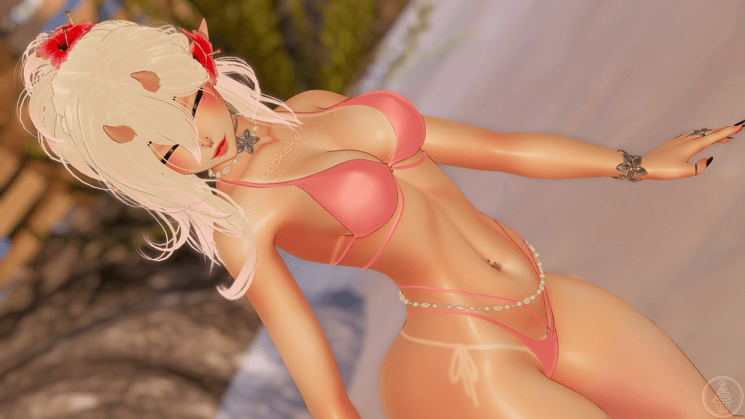 Assets made from scratch by me(Cupkake): Bodysuit Bikini, Glasses, Cat Ears, Horns, Elf Ears, Oni Tail, All Piercings, Wiggly tongue