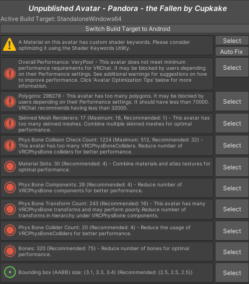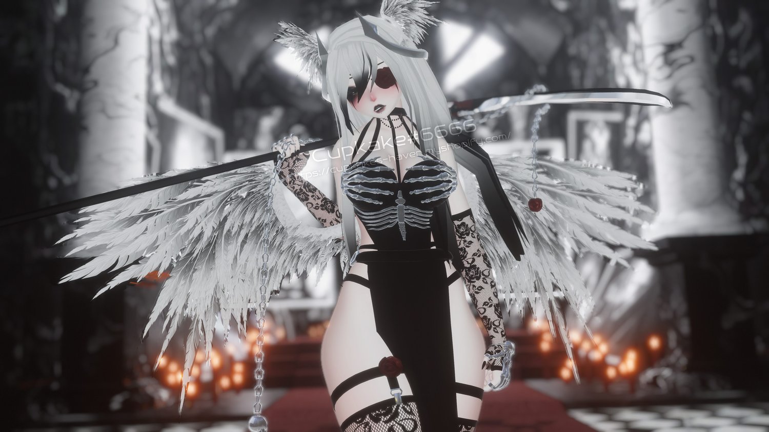 - Phys bones: Hair, Chest, Butt, Wings on head/back, Skirt, Scythe