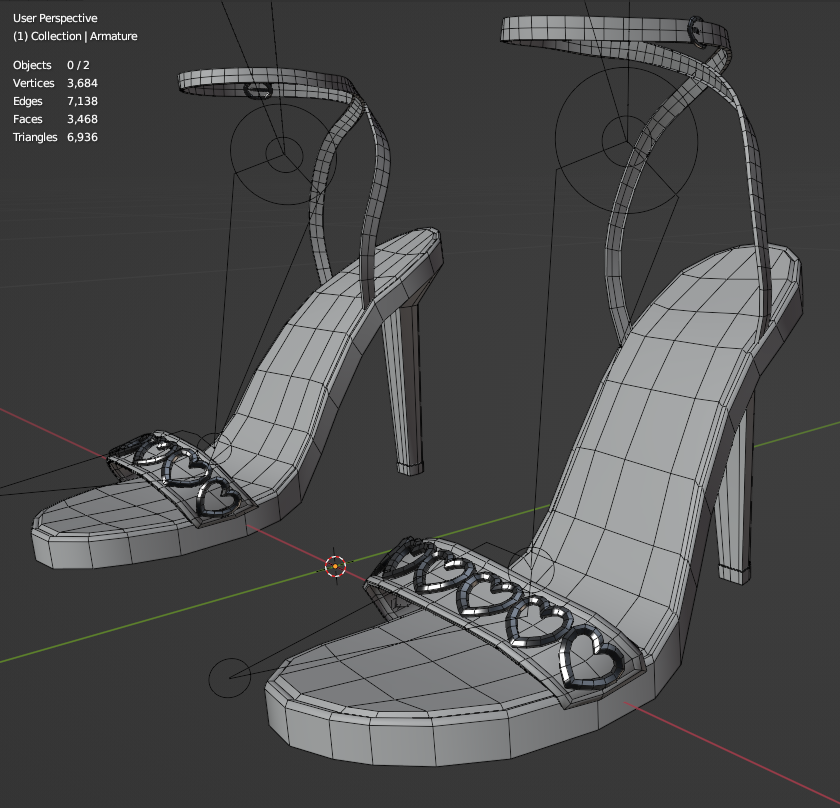 From scratch made cute, sexy and elegant high heel sandal shoes by me. Comes with 2 FBX files - 1 with hearts, and 1 without, and Base Color(3 colors included! Black, White and Pink!)/Normal map/Roughness map textures.
