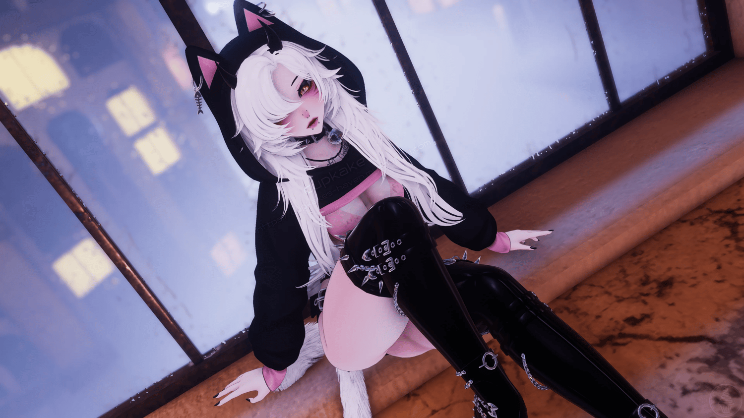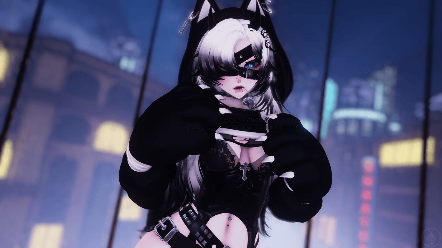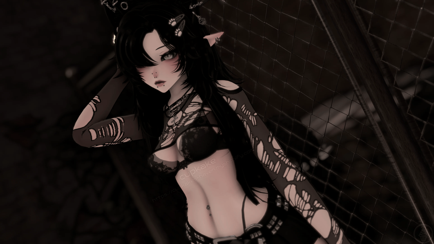 Assets made from scratch by me(Cupkake): Hoodie, Paws, Top, Corset, Garters, Socks, Blindfold, Belt, Ponytail, Elf Ears, Pasties, Hairclips, Lollipop, All Piercings, Wiggly tongue