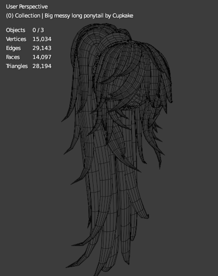 Big messy long ponytail (3D Model Asset)(Commercial license)