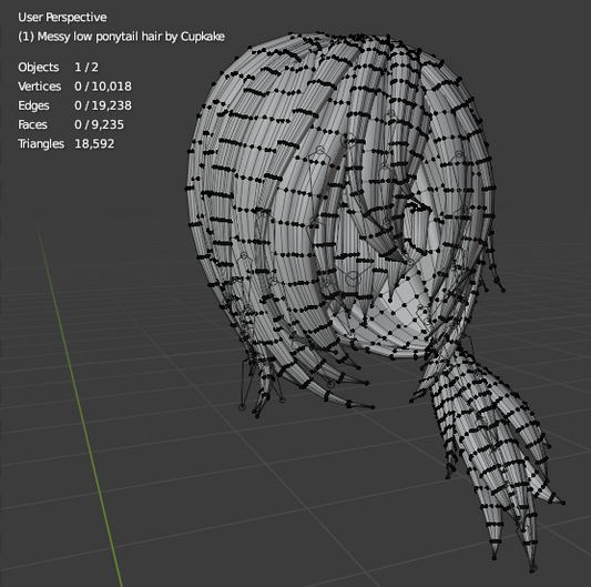 Messy low ponytail hair (3D Model Asset)(Commercial license)
