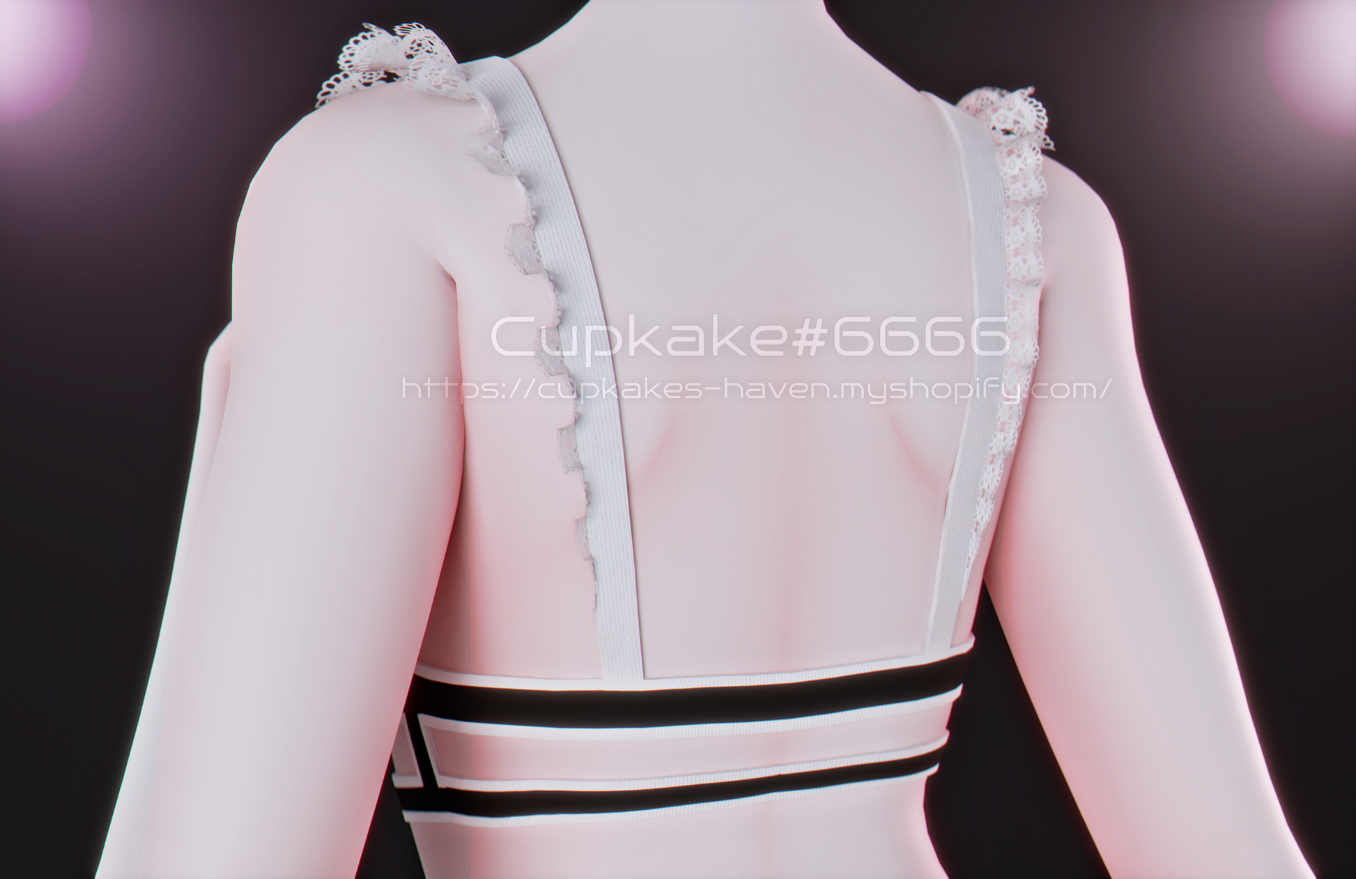 From scratch made cute bow bra top with heart and frill accents by me. Comes with 1 FBX file, Base Color textures(includes 2 colors! - Black and Pink)/Normal map/Roughness map.