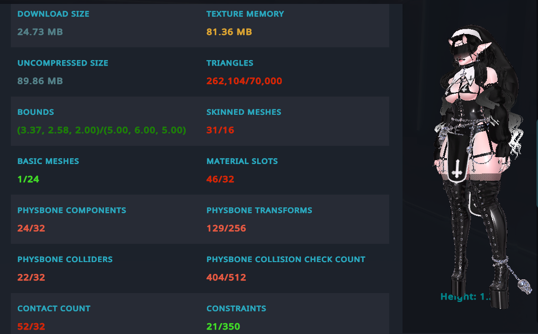 - Phys bones in: Ears, Hair, Chest, Butt, Thighs, Tail, Veils, Earrings, Belt/Ankle chains, Choker, Skirt