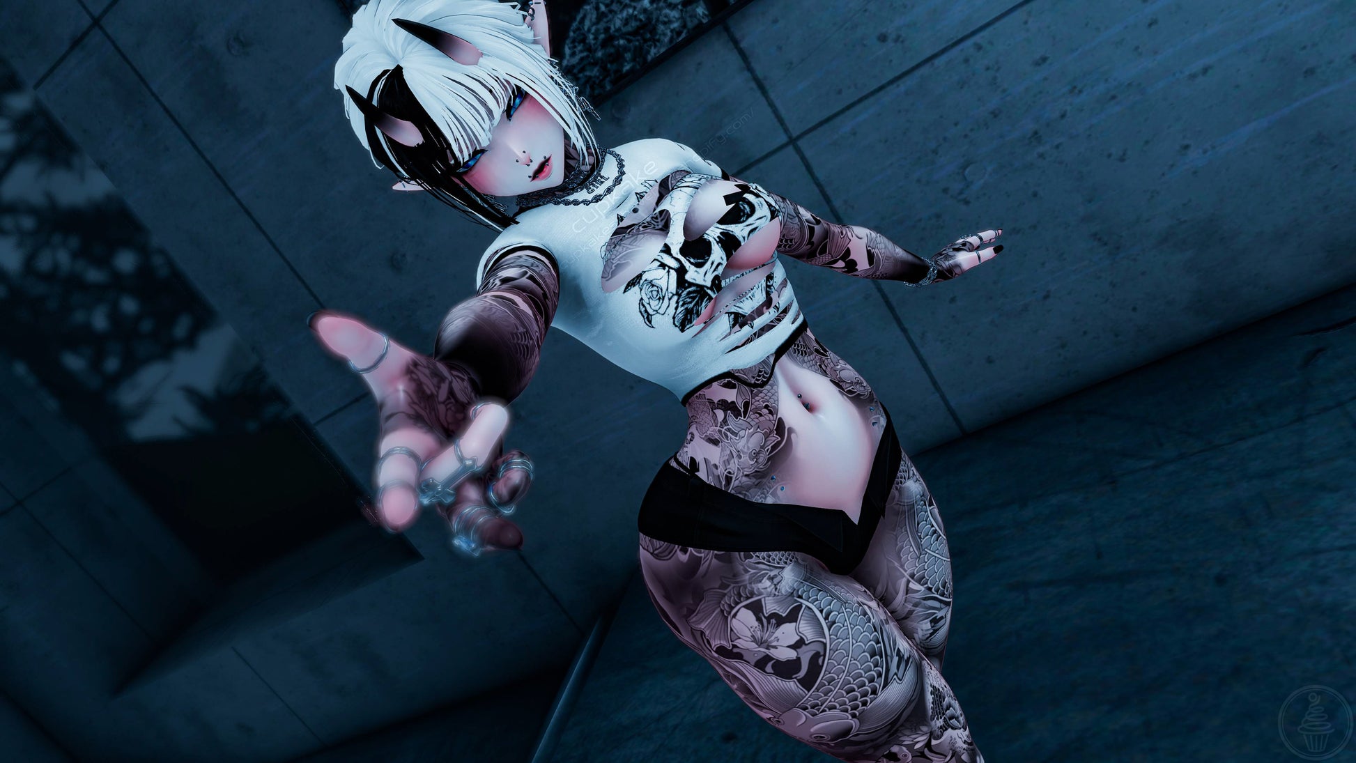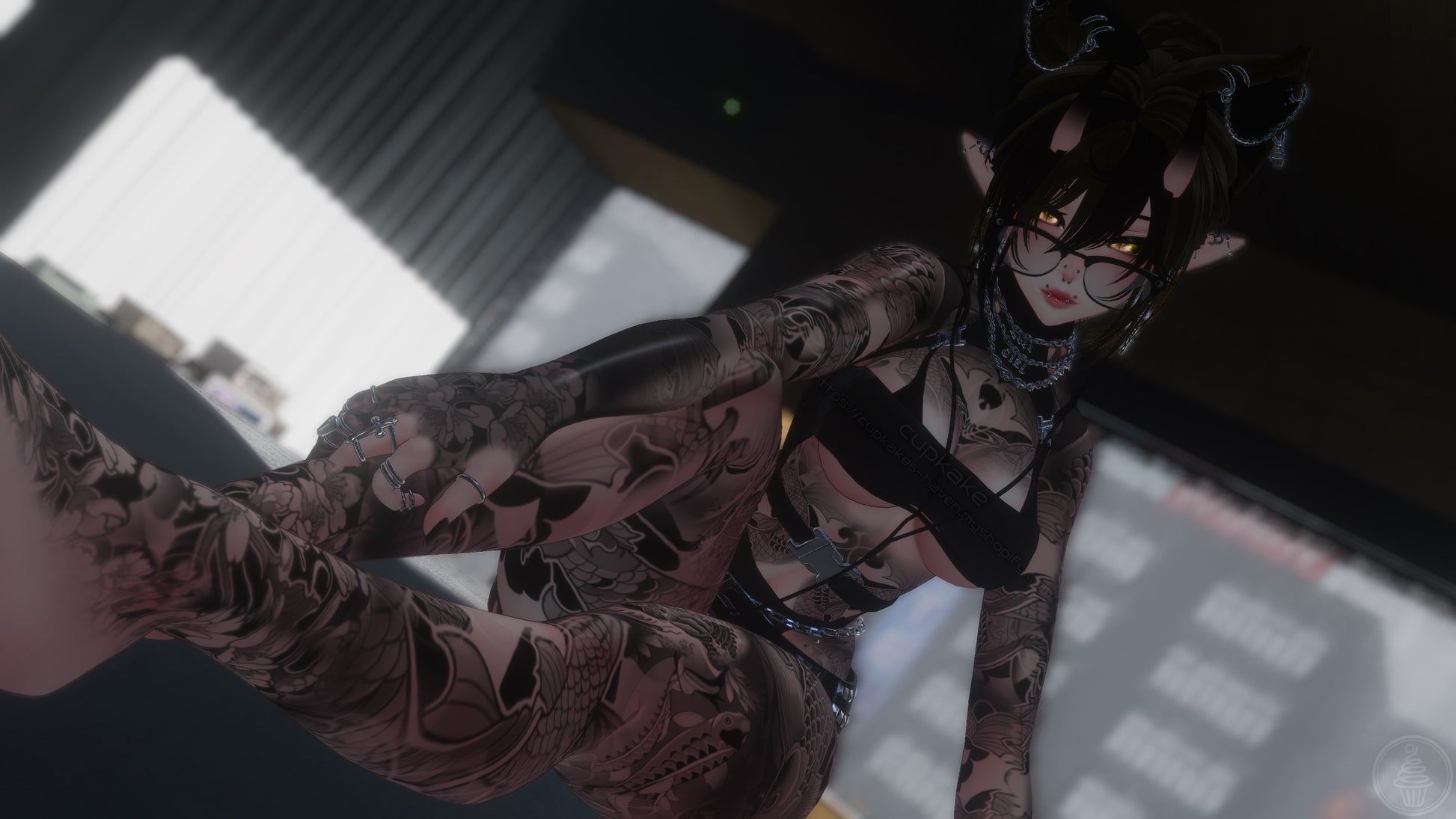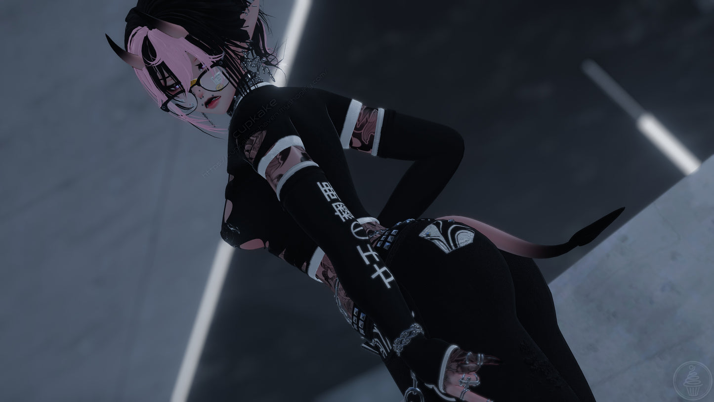 Assets made from scratch by me(Cupkake): Horns, Elf Ears, Oni Tail, Gloves, Socks, Belt, Phone+Earbuds, Bra, Panties, Pasties, All Piercings, Wiggly tongue