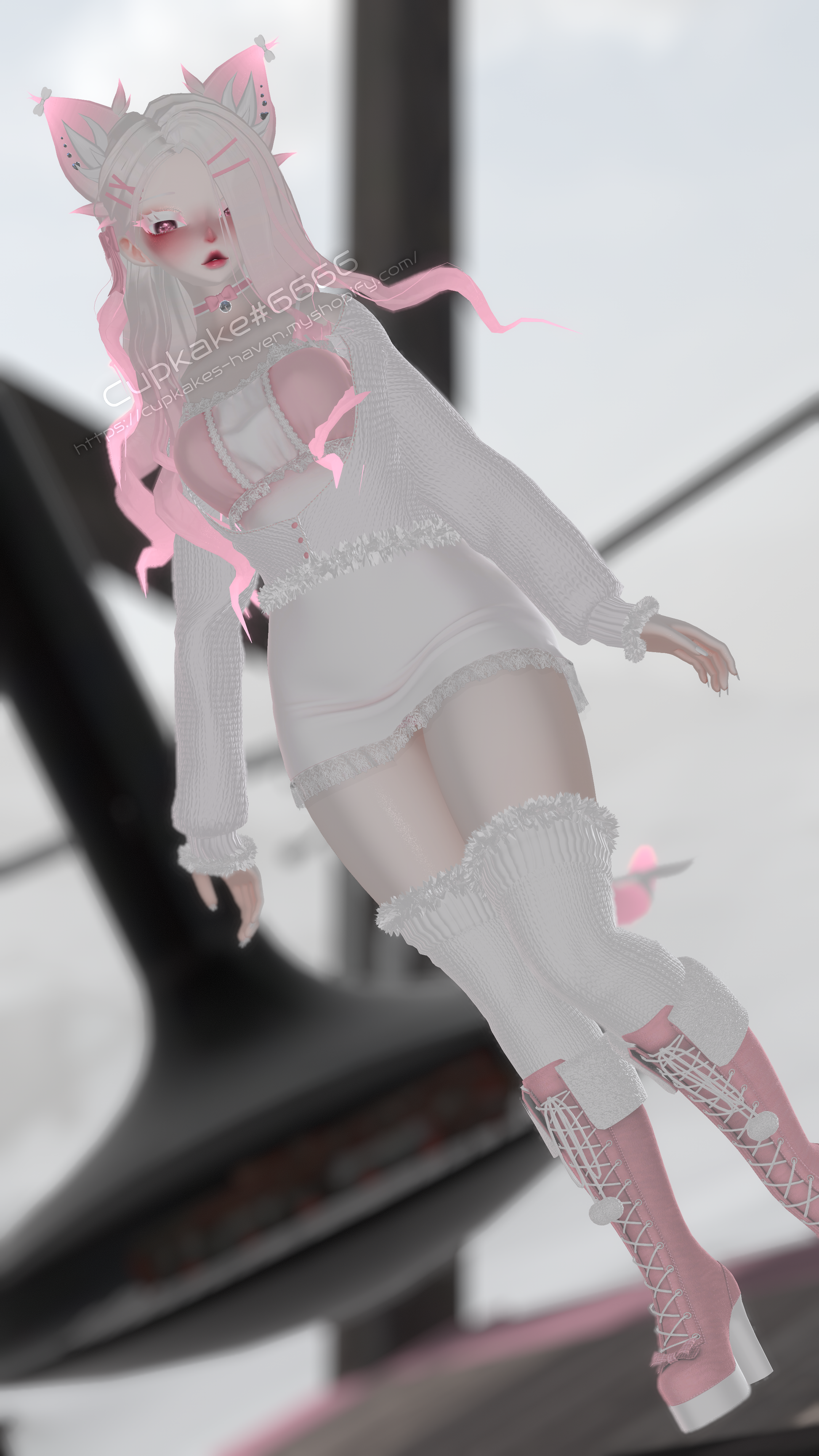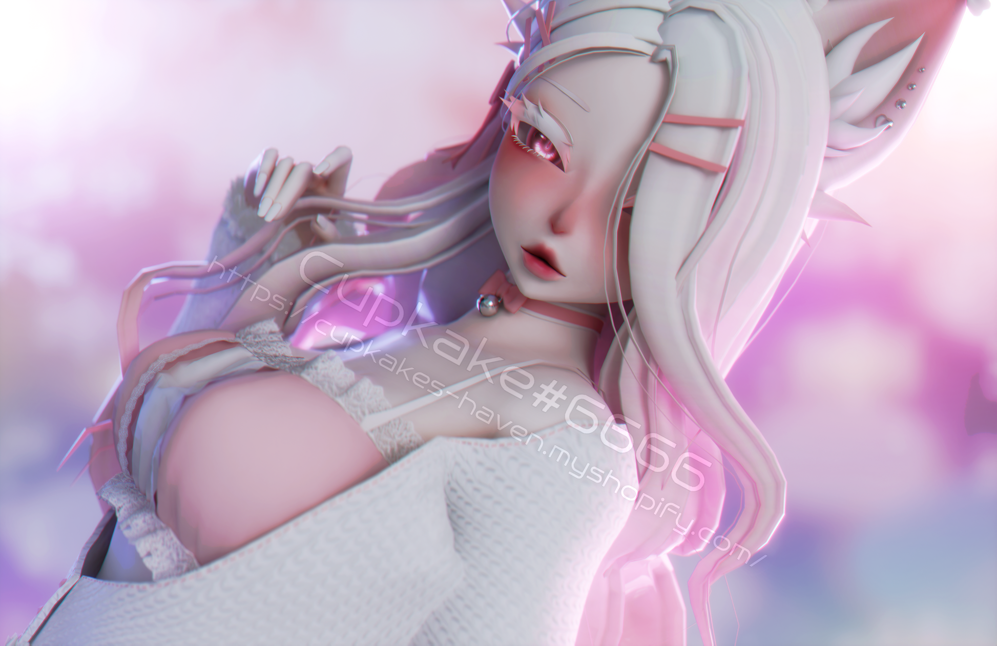 Assets made from scratch by me(Cupkake#6666): Choker(bow by Nessy!#7402), Pasties, Socks, All fluff, Body piercings