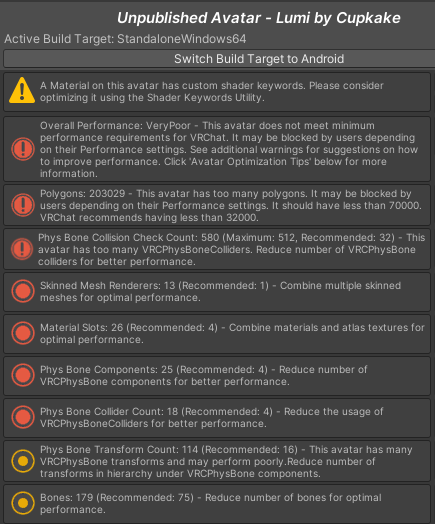 - Phys bones: Ears, Hair, Chest, Butt, Tail, Shoe laces, Choker bell