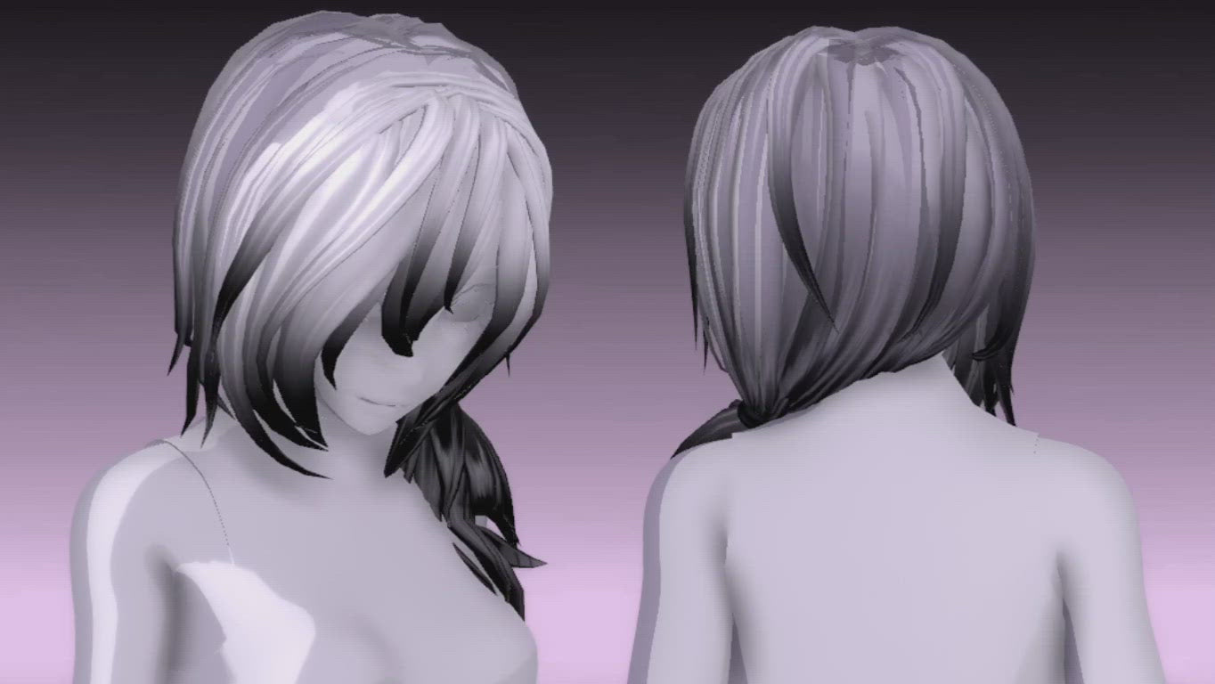 Messy low ponytail hair (3D Model Asset)(Commercial license)