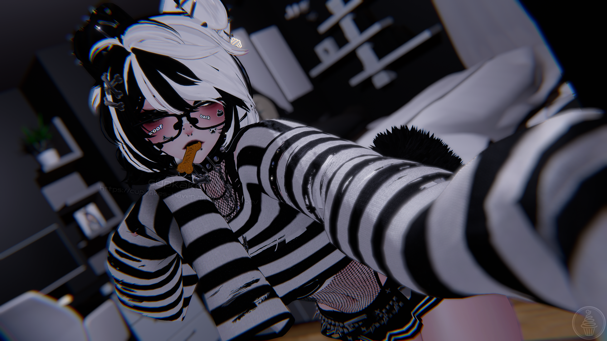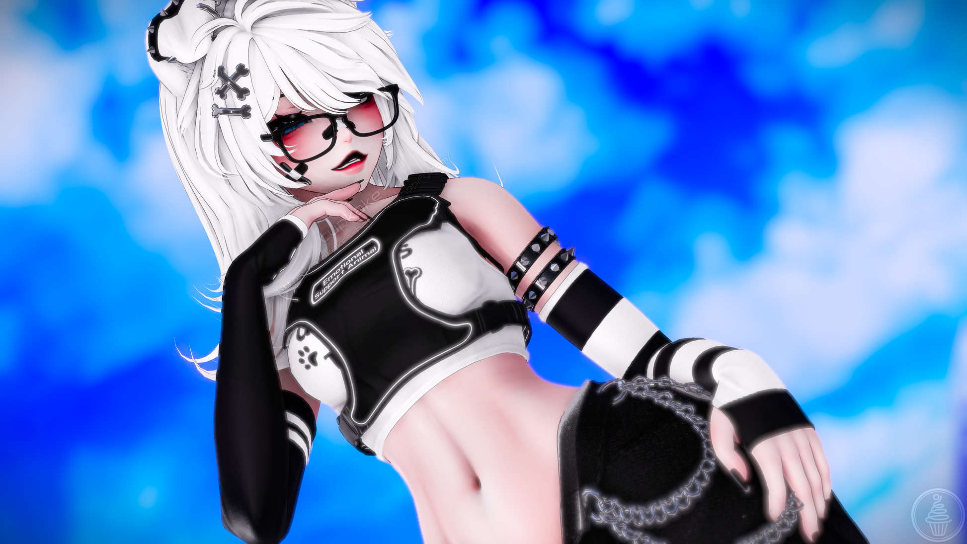 Assets made from scratch by me(Cupkake): Tank Top, Skirt, Gloves, Socks, Bra, Panties, Pasties, Leash, Garter, Arm bands, Dog ears/tail, Hairclips, Bandaids, Stickers, Bone treats, Oni Horns/tail, Elf ears, All piercings, Wiggly tongue
