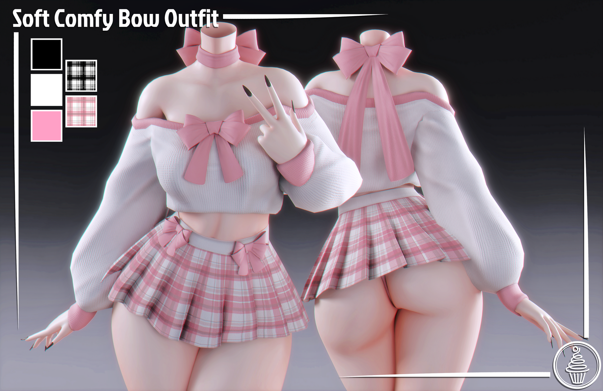 Soft Comfy Bow Outfit (3D Model Asset)(Commercial license)